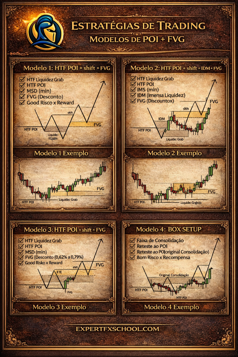 ANALISTA Igor Pereira Postado 1 hora atrás ANALISTA Denunciar Share Postado 1 hora atrás Muitos traders operam acreditando que o mercado se move de forma aleatória ou puramente baseado em notícias superficiais. No entanto, quem observa o mercado de dentro, com a ótica institucional, sabe que existe uma "lógica algorítmica" por trás de cada movimento. Por Igor Pereira | Analista de Mercado Financeiro & Membro Junior WallStreet NYSE Hoje, trago para a ExpertFX School um estudo aprofundado sobre o que realmente move o preço: A busca por Liquidez. Não estamos falando de "setup mágico", mas sim de rastrear onde o dinheiro inteligente (Smart Money) precisa ir para preencher suas ordens gigantescas. Abaixo, decodifiquei os 4 Modelos de Entrada de Alta Probabilidade que utilizam conceitos institucionais para validar operações. Os grandes bancos e instituições não podem simplesmente "clicar em comprar". O volume deles é tão grande que, se o fizerem, o preço dispara sem preencher todas as ordens (slippage). Eles precisam de "contraparte" ou GRAB de Liquidez. Eles precisam que você venda para que eles possam comprar. É por isso que vemos "armadilhas" e movimentos bruscos contra a tendência antes do movimento real. Os modelos abaixo (HTF - High Time Frame H1/H4/D1) mostram exatamente como identificar quando a "manipulação" acabou e o movimento real vai começar. Você deve estar se perguntando, mas esse modelos institucionais gráficos servem somente para "Bullish/Compra"? Não, o mesmo exemplo deve ser seguido ao inverso, o mercado sempre "recria" (Pontos de Interesse (POIs) e FVGs para confirmar uma tendência ou reversão, para que em seguida dê a continuidade. MODELO 1: A Reversão Clássica (HTF POI + Shift + FVG) Este é o modelo fundamental de reversão de mercado. Ele ocorre quando o preço atinge um Ponto de Interesse de Tempo Gráfico Superior (HTF POI) — como um suporte semanal ou diário. A Captura (Liquidity Grab): O mercado faz um fundo mais baixo, varrendo os Stop Loss dos varejistas que compraram cedo demais. Isso gera a liquidez necessária. A Mudança (MSS - Market Structure Shift): Logo após a captura, o preço explode para o lado oposto, quebrando a estrutura anterior (topo anterior). Isso confirma que a mão institucional entrou. A Entrada (FVG): O movimento agressivo deixa um "vácuo" ou desequilíbrio no preço, conhecido como Fair Value Gap (FVG). Execução: Aguardamos o preço retornar a esse FVG em uma zona de desconto para entrar a favor do novo movimento. Insight do Analista: Se você entrar antes da captura de liquidez (o fundo falso), você será a liquidez. Paciência é a chave. MODELO 2: A Armadilha do Inducement (IDM + FVG) Este é o modelo responsável por estopar traders que já conhecem o básico de Smart Money, mas são impacientes. Muitas vezes, após o Market Structure Shift (quebra de estrutura), o mercado não retorna diretamente à origem. Ele cria um Inducement (IDM) ou "Liquidez Interna". O Cenário: O preço sobe, faz um pequeno recuo (criando um fundo falso) e sobe mais um pouco. O trader ansioso vê esse recuo como suporte e compra. A Armadilha: O algoritmo institucional derruba o preço uma última vez para varrer esse "fundo falso" (IDM), tocando no FVG real que estava mais abaixo. Execução: Nunca compre no primeiro recuo óbvio após uma quebra de estrutura se houver um FVG não testado logo abaixo. O IDM é o combustível final antes do lançamento real. MODELO 3: A Precisão Matemática (OTE + FVG) Os algoritmos de Alta Frequência (HFT) operam baseados em lógica matemática de desconto. Eles raramente compram em preços "justos"; eles querem preços "com desconto". A Lógica: Este modelo utiliza a mesma base do Modelo 1, mas adiciona um filtro de alta precisão: a OTE (Optimal Trade Entry) . A Zona de Ouro: Traçamos a retração de Fibonacci do fundo ao topo do movimento de quebra. As instituições programam ordens pesadas na zona entre 62% e 79% de retração. Confluência: Quando o Fair Value Gap (FVG) se alinha perfeitamente dentro desta zona de 62-79%, a probabilidade de acerto se torna vertical. Nota para XAU/USD: O Ouro respeita eximiamente a zona de 79% antes de movimentos explosivos. MODELO 4: O Setup de Caixa (Acumulação e Manipulação) Muitas vezes, o mercado fica lateralizado, "chato", consolidado em um intervalo (Box). Isso não é inatividade; é acumulação de ordens. A Consolidação: O preço fica preso em um range, induzindo traders a operar suporte e resistência simples. A Manipulação (Liquidity Grab): De repente, o preço rompe agressivamente para um lado (ex: para baixo). Varejistas vendem achando que é um rompimento (Breakout). Na verdade, é uma captura de liquidez institucional. O Retorno: O preço reverte violentamente e volta para dentro da caixa e rompe para o lado oposto. O Reteste: O "reteste" da consolidação original não é apenas suporte; é os bancos mitigando suas posições para o movimento real de alta. O gráfico que você vê na sua tela é, em muitos aspectos, uma narrativa construída para testar sua gestão emocional e técnica. Para nós, na ExpertFX School, entender esses 4 modelos significa parar de tentar adivinhar o topo ou o fundo e começar a reagir a fatos consumados: Houve captura de liquidez? Houve quebra de estrutura (MSS) (BOS)? O preço está em região de desconto (OTE)? Estudem esses diagramas. Salvem este material. O mercado financeiro é uma transferência de riqueza do impaciente para o paciente. ExpertFX School — Formando a Elite do Mercado Financeiro. Perfeito! Obrigado! Amei! Haha Confuso :/ Vixi! Wow! Gostei! × 💬 Gostou do conteúdo? Sua avaliação é muito importante! Gostei! Perfeito! Obrigado! Amei! Haha Confuso :/ Vixi! Wow! Citar Link para o comentário Compartilhar em outros sites More sharing options...