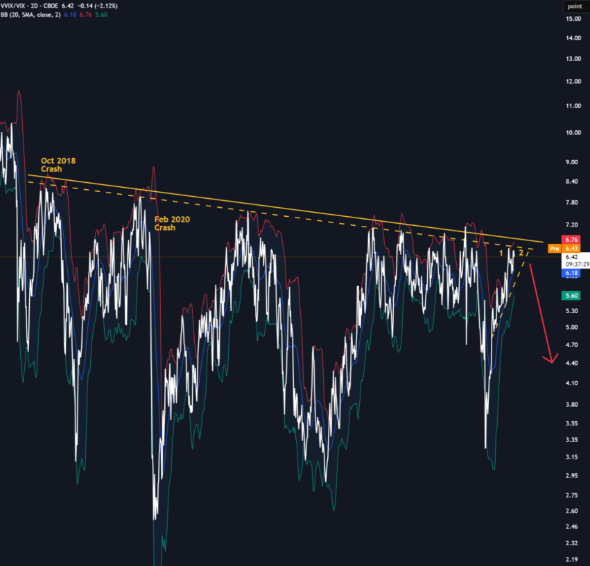 ANALISTA Igor Pereira Postado Setembro 16 ANALISTA Denunciar Share Postado Setembro 16 Enquanto o mercado de ações opera em um estado de aparente tranquilidade, com o índice de volatilidade VIX atingindo seu nível mais baixo desde o primeiro trimestre, um indicador mais profundo e sofisticado – muitas vezes chamado de "o medo do medo" – está emitindo um de seus mais fortes sinais de alerta em anos. A complacência pode estar prestes a ser severamente punida. Por Igor Pereira, Analista de Mercado Financeiro e Membro Junior WallStreet NYSE A Calmaria Perigosa: VIX em Mínimas Anuais O VIX baixo indica que não há medo no mercado. Os investidores não estão comprando proteção (opções de venda) de forma agressiva, criando um ambiente de excesso de confiança. Historicamente, períodos prolongados de VIX em níveis extremamente baixos atuam como uma mola comprimida: quanto mais tempo permanece baixo, mais violenta tende a ser a explosão de volatilidade subsequente. Com dois eventos de risco massivo no horizonte – a decisão do FOMC amanhã e o vencimento de opções de "Triple Witching" na sexta-feira – o cenário está montado para um potencial catalisador. O Sinal Oculto: Decifrando o Gráfico VVIX/VIX O gráfico em destaque não é do VIX, mas do ratio VVIX/VIX . O VVIX mede a volatilidade do próprio VIX. Portanto, esse ratio mede a "volatilidade da volatilidade". Ele nos diz o quão nervosos os traders de volatilidade estão. A análise deste gráfico é alarmante: Resistência Histórica: Uma linha de tendência descendente de longo prazo conecta os picos exatos que precederam os crashes de outubro de 2018 e fevereiro de 2020 (Covid). Rejeição Iminente: O ratio acaba de tocar esta linha de tendência crítica pela terceira vez e mostra sinais de rejeição, exatamente como fez antes das quedas anteriores. A interpretação é clara: O mercado de derivativos de volatilidade atingiu um ponto de saturação de complacência. Historicamente, uma rejeição a partir deste nível tem sido o prenúncio de um evento "risk-off" súbito e de um pico acentuado no VIX. O Catalisador e o Impacto no Mercado O gatilho mais provável para essa explosão de volatilidade seria um tom 'hawkish' de Jerome Powell na coletiva de imprensa de amanhã, uma possibilidade que atribuímos a uma probabilidade de 40% em nossa análise de cenários. Se Powell sinalizar que a inflação ainda é uma grande preocupação, ele pode frustrar as expectativas otimistas do mercado. Impacto no S&P 500 (SPX): Um pico no VIX é, por definição, baixista para as ações. A complacência seria substituída pelo pânico, podendo levar a uma correção rápida e acentuada. Impacto no Ouro (XAU/USD): Um evento de aversão ao risco desta natureza seria altista para o ouro. Embora o dólar possa ter um pico inicial, o caos e a incerteza nos mercados de ações levariam a uma forte fuga para a segurança. O ouro se beneficiaria diretamente da percepção de que o Fed pode estar cometendo um erro de política, reforçando seu status como o principal porto seguro. Conclusão: A combinação de complacência extrema (VIX baixo), um sinal de alerta técnico de um indicador avançado (VVIX/VIX) e catalisadores de alto impacto iminentes cria um dos setups mais perigosos para os mercados de ações este ano. Enquanto o investidor médio vê calma na superfície, os gráficos mais profundos sugerem que estamos à beira de um despertar abrupto. A cautela é fundamental. Citar Link para o comentário Compartilhar em outros sites More sharing options...