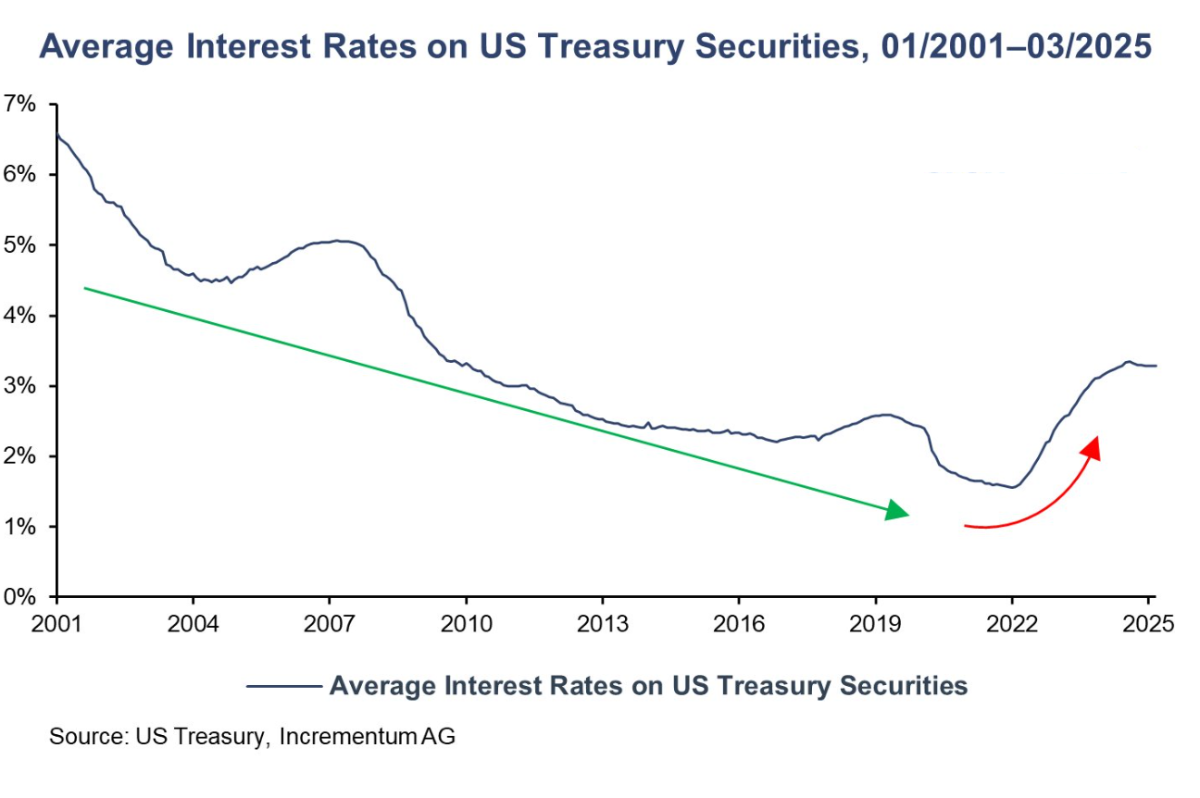 ANALISTA Igor Pereira Postado Outubro 4 ANALISTA Denunciar Share Postado Outubro 4 Ao refletirmos sobre as forças que moldarão os mercados nos próximos anos, um gráfico crucial da Incrementum AG revela a ativação de uma verdadeira bomba-relógio fiscal no coração da economia americana. Por mais de duas décadas, o governo dos EUA se beneficiou de um poderoso vento a favor: uma tendência de queda contínua nas taxas de juros, que tornava sua dívida crescente artificialmente gerenciável. Por Igor Pereira, Analista de Mercado Financeiro, ExpertFX School Como o gráfico demonstra, essa era acabou. A maré virou, e a reversão acentuada nas taxas de juros está colocando o Federal Reserve em uma posição impossível, com implicações profundas para o dólar e para o ouro. 1. A Virada da Maré: A Nova Realidade dos Juros Altos Por 20 anos, de 2001 a 2021, a taxa de juros média paga sobre a dívida do Tesouro americano caiu de mais de 6% para cerca de 1,5%. Isso permitiu que o governo aumentasse sua dívida para dezenas de trilhões de dólares sem que os pagamentos de juros explodissem. No entanto, desde 2021, essa tendência se inverteu violentamente. A taxa média sobre a dívida dos EUA já ultrapassou os 3%, o nível mais alto desde a crise de 2009. O problema se torna crítico quando olhamos para o futuro: apenas em 2025, mais de $7 trilhões em dívidas americanas precisarão ser refinanciadas. Minha Análise: Na minha visão, este é o cerne da crise. Trilhões de dólares em dívidas que foram emitidas com juros baixíssimos de 1-2% agora serão "roladas" para novas dívidas com juros de 3-4% ou mais. O impacto nos já explosivos pagamentos de juros do governo será astronômico, acelerando a trajetória rumo a uma crise fiscal. 2. A "Camisa de Força" do Federal Reserve Esta nova realidade fiscal coloca o Federal Reserve em uma "camisa de força". A matemática é brutal: o Tesouro Americano simplesmente não pode arcar com taxas de juros elevadas por um período prolongado. A pressão política e sistêmica sobre o Fed para controlar os custos de empréstimo do governo será imensa. Cada ponto percentual importa, e a economia do governo com juros mais baixos se traduz em trilhões de dólares ao longo do tempo. Minha Análise (Igor Pereira): A decisão de cortar os juros deixa de ser apenas uma resposta a dados econômicos como emprego ou inflação. Ela se torna uma necessidade fiscal para garantir a solvência do próprio governo. Na minha opinião, o Fed não terá outra escolha a não ser, eventualmente, suprimir os rendimentos dos títulos (manter os juros baixos), seja através de cortes agressivos em sua taxa básica, seja através do retorno do Quantitative Easing (QE) – a impressão de dinheiro para comprar títulos do governo. A estabilidade fiscal do país agora depende disso. Conclusão: O Combustível Supremo para o Ouro E esse cenário, traders, é o ambiente mais otimista que se pode conceber para o ouro (XAU/USD). Se o Federal Reserve for estruturalmente forçado a manter os juros baixos e a imprimir dinheiro para que o governo possa pagar suas contas, o dólar americano está destinado a perder seu poder de compra de forma contínua e inevitável ao longo prazo. A alta do ouro não é apenas uma reação à incerteza de hoje. É uma antecipação da certeza de amanhã: a de que o Federal Reserve será forçado a sacrificar o valor do dólar no altar da solvência fiscal do governo. Este gráfico não mostra apenas o passado das taxas de juros; ele nos mostra o futuro do ouro. Citar Link para o comentário Compartilhar em outros sites More sharing options...
